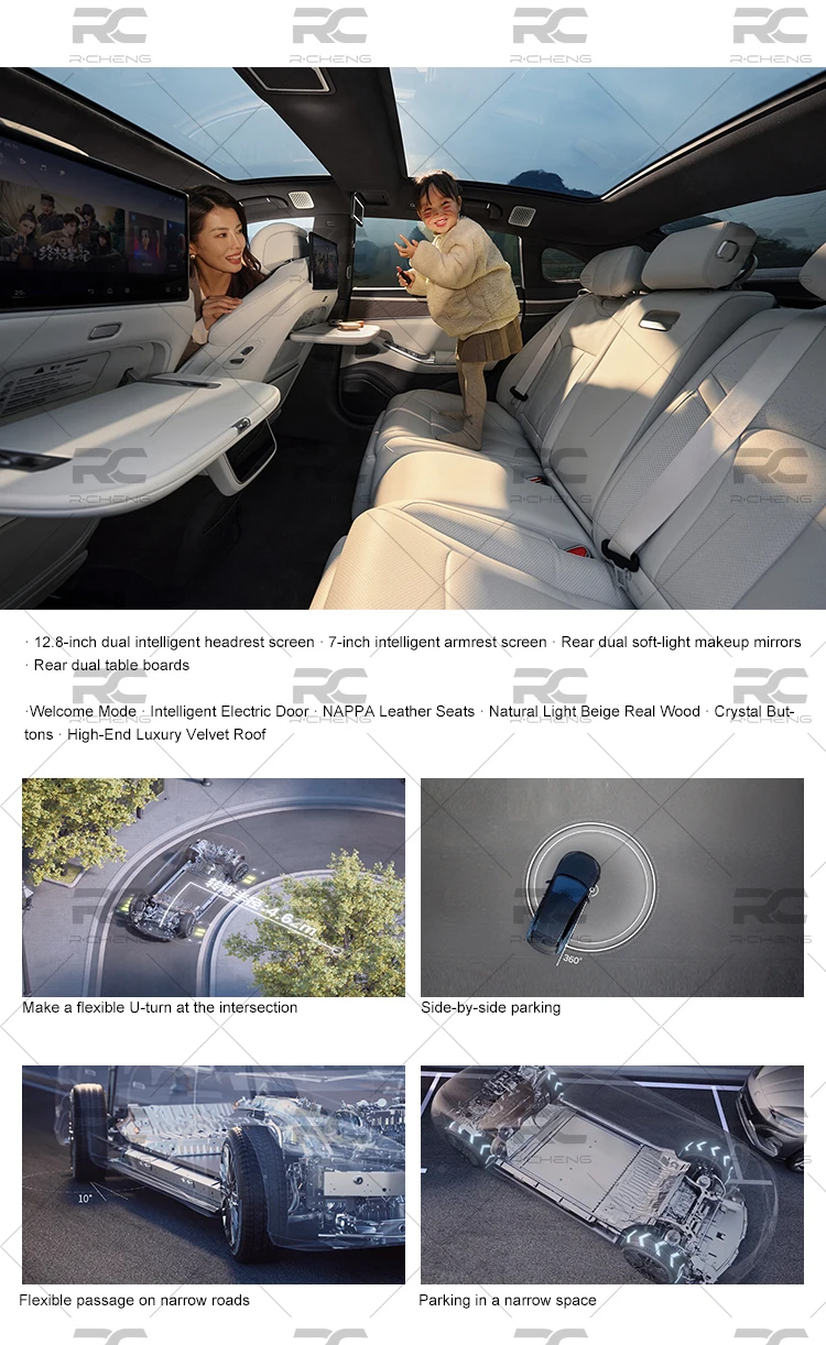 Product Description Specification Max. Speed (km) 240KM/H Length*Width*Height (mm) 5180x1990x1500mm Wheelbase (mm) 3125mm Body Structure 5 seats, 5 doors Tire Specification 255/45 R20 Driving Mode Three Motor + All Wheel Drive Fuel Oil Type Pure Electric