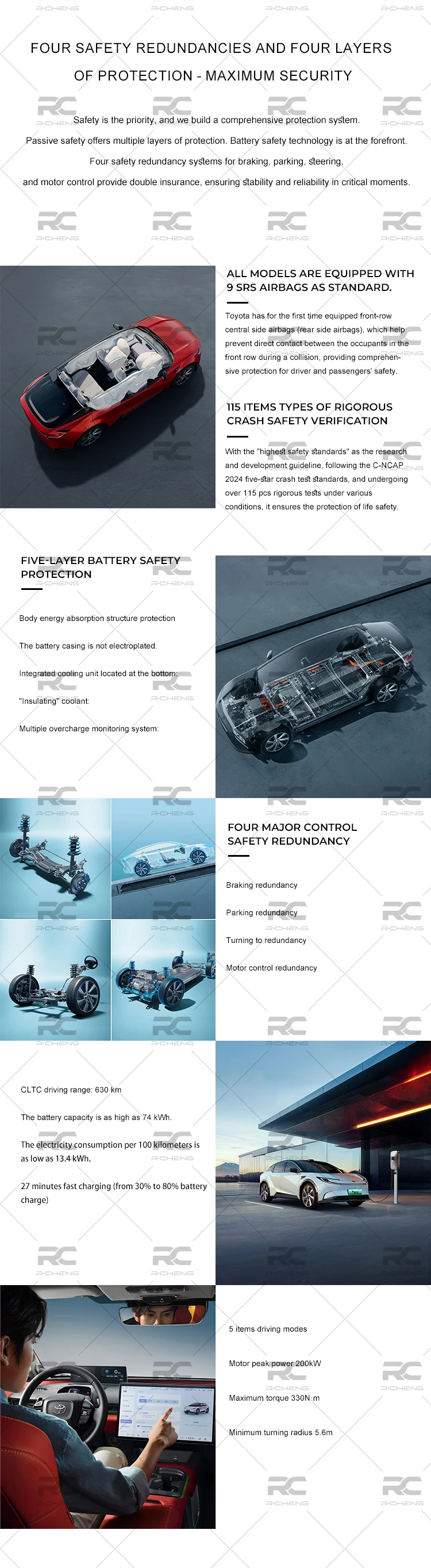 Products Description Intelligence lies in extreme beauty 630km pure electricrange CLTC 5 ltems battery safety protections 9 PCSsafety airbag The newly upgraded family-style "hammerhead shark"front grille Diamond three-dimensional cutting profileIntegrate
